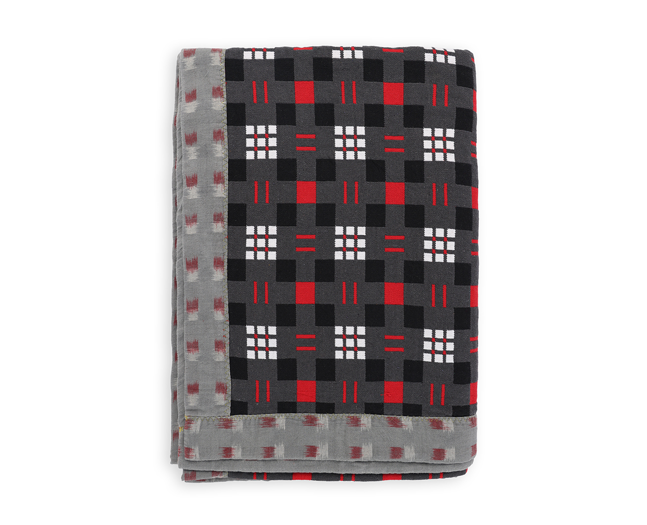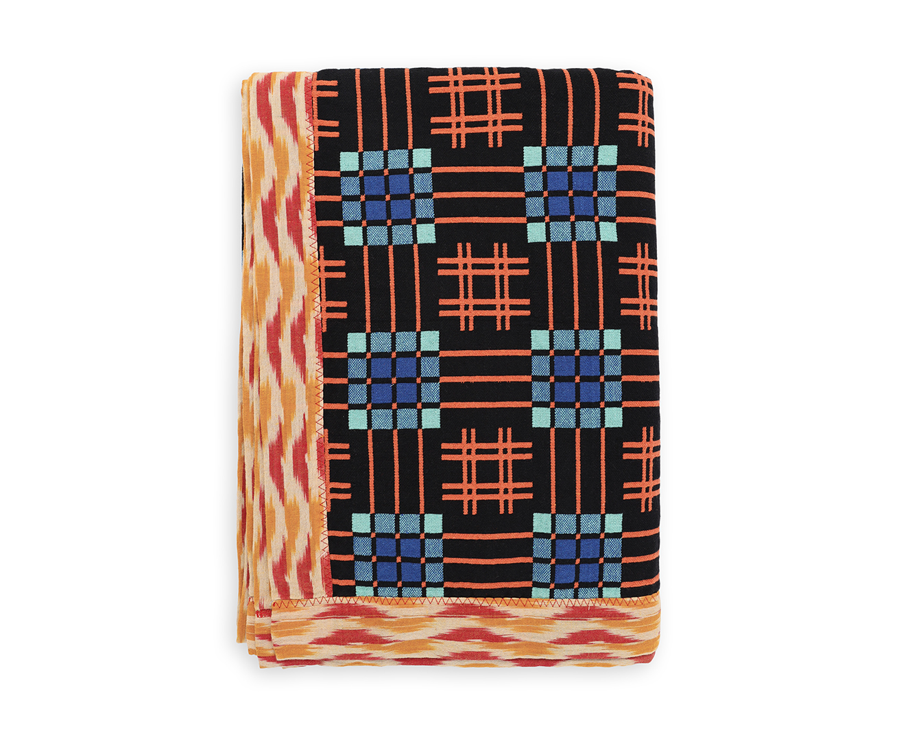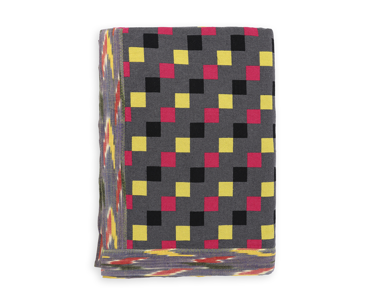 100% COTTON JACQUARD BLANKET WITH A 100% COTTON IKAT TRIM