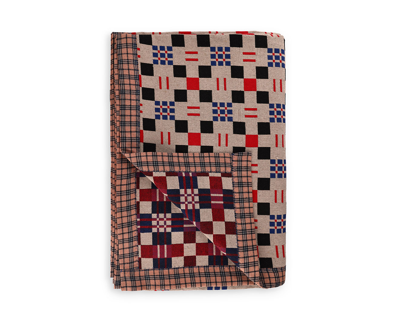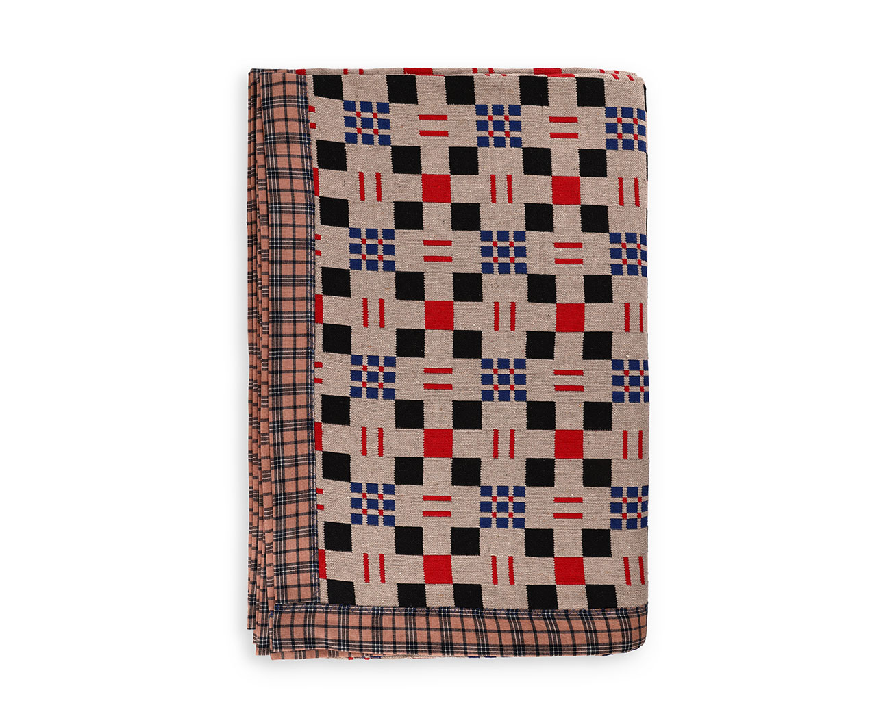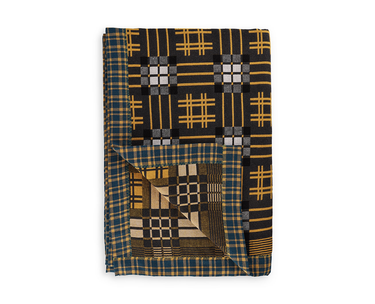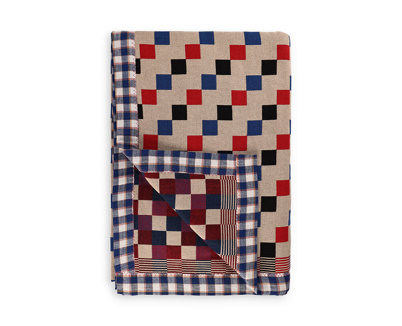 100% COTTON JACQUARD BLANKET WITH A 100% COTTON IKAT TRIM